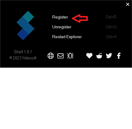 At the point when that's what you do, a little window will show up. To add the Nilesoft Shell augmentation to your framework, click "Register" and this will restart the Traveler.